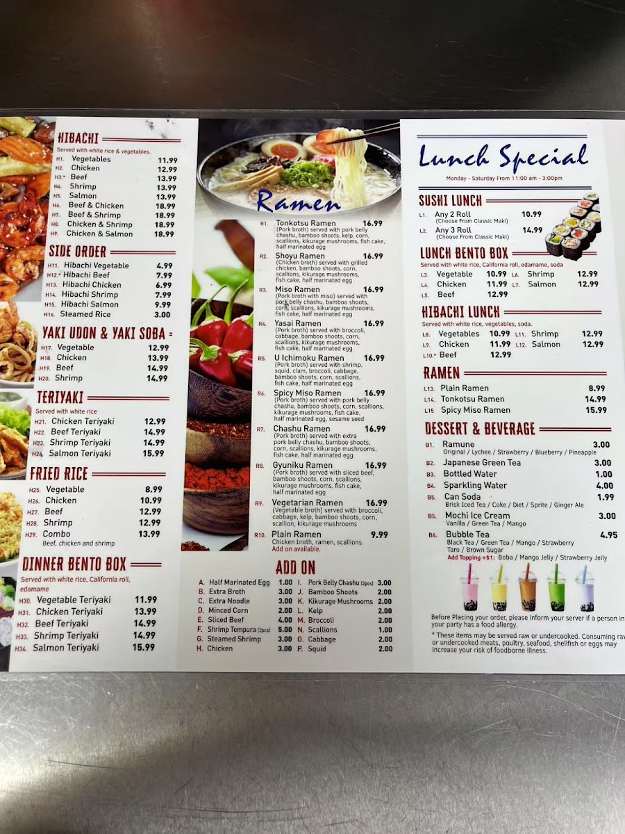 The Ichimoku Ramen menu offers a vibrant blend of traditional and modern Japanese dishes, making it a go-to spot for anyone craving authentic flavors in Brooklyn. At the heart of the menu is their extensive ramen selection, with favorites like the Ichimoku Ramen and Tonkotsu Ramen, each delivering rich broths and perfectly cooked noodles. For those who prefer something lighter, the Miso Ramen and Gyuniku Ramen provide a savory twist, while the Plain Ramen allows diners to savor the base flavors. If you're in the mood for sushi, the Ichimoku Ramen Menu also includes a variety of sushi and sashimi options, including fresh Tuna, Salmon, and Shrimp, perfect for an à la carte experience. Special rolls like the Volcano Maki and Brooklyn Maki offer an exciting, bold contrast to the classic selections such as the Spicy Shrimp Cucumber Maki and Eel Roll.